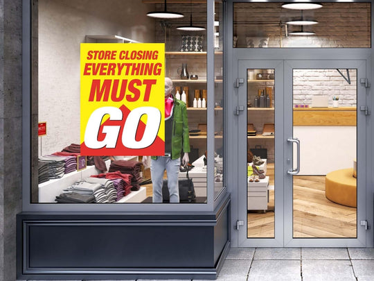 Store Closing Down | Retail Window Display Sign | 18"W x 24"H | 5 Pack