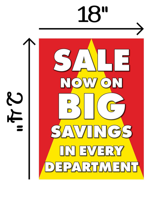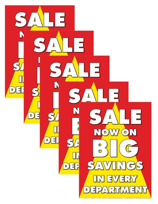 Sale Now On Big Savings | Retail Window Display Sign | 18"W x 24"H | 5 Pack