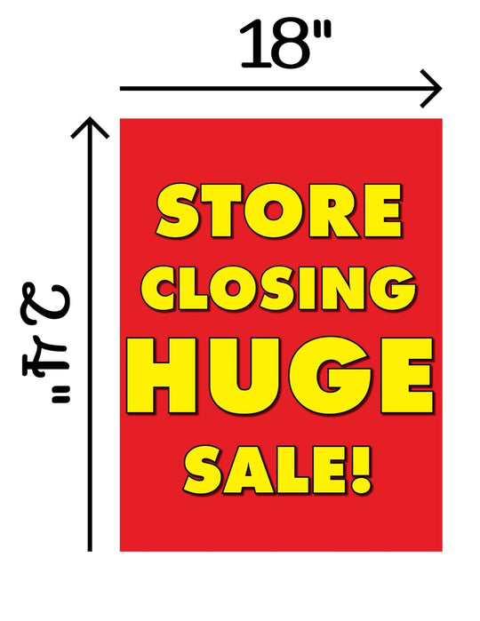 Store Closing Huge Sale | Retail Window Display Sign | 18"W x 24"H | 5 Pack