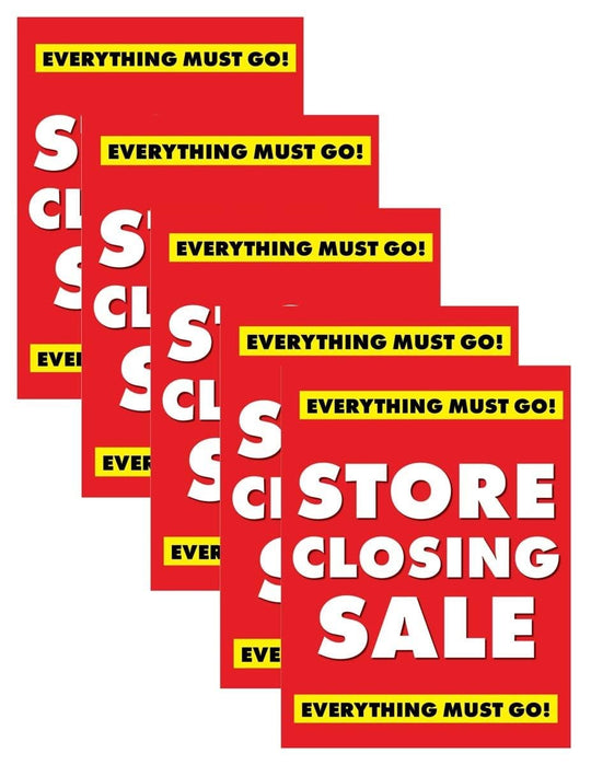 Store Closing Sale | Retail Window Display Sign | 18"W x 24"H | 5 Pack