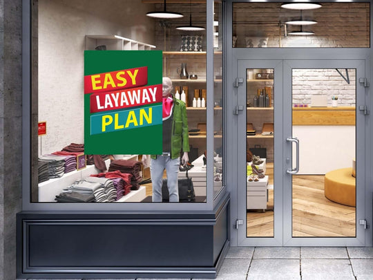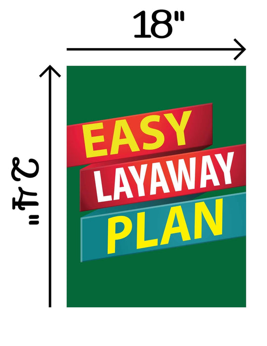 Easy Layaway Plan | Retail Window Display Sign | 18"W x 24"H | 5 Pack