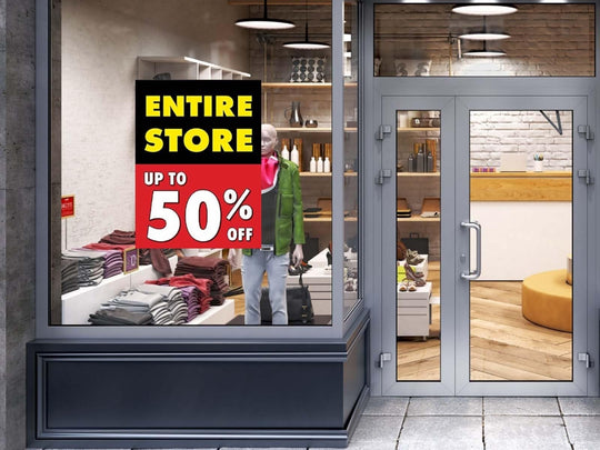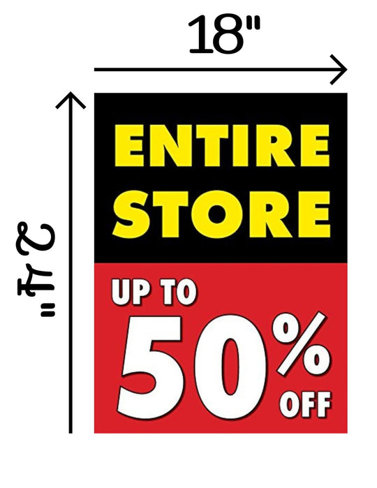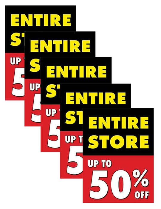 Entire Store Up to 50 Off | Retail Window Display Sign | 18"W x 24"H | 5 Pack