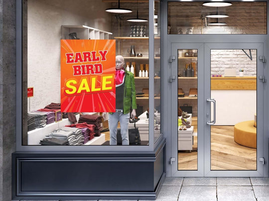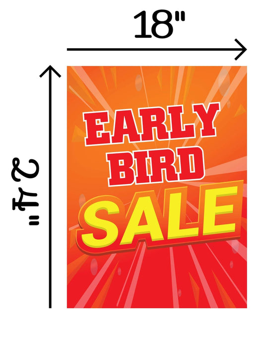Early Bird Sale | Retail Window Display Sign | 18"W x 24"H | 5 Pack