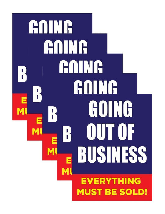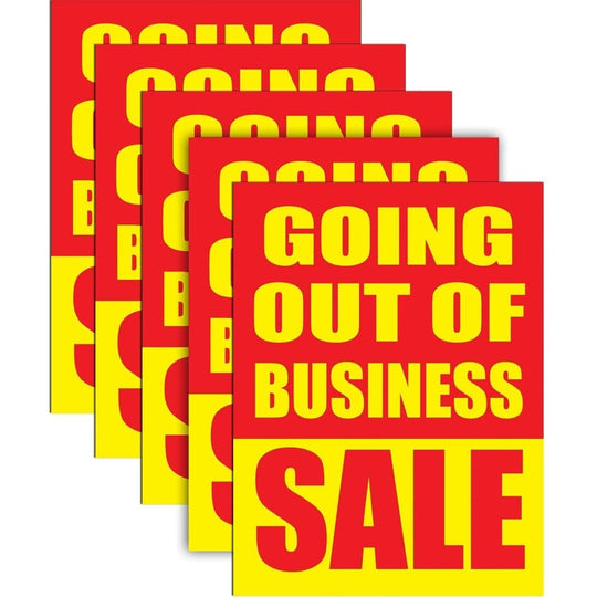 Going Out Of Business | Retail Window Display Sign | 18"W x 24"H | 5 Pack