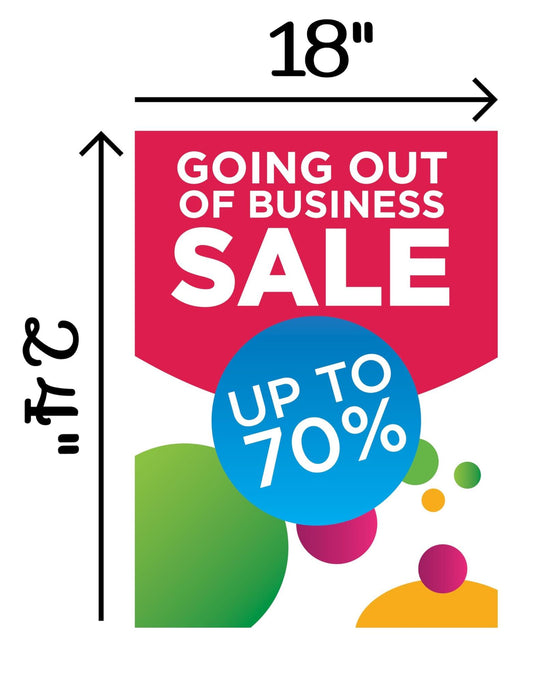 Going Out of Biz 70 Off | Retail Window Display Sign | 18"W x 24"H | 5 Pack
