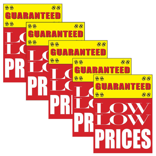 Guaranteed Low Prices | Retail Window Display Sign | 18"W x 24"H | 5 Pack