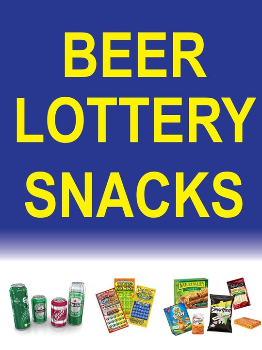 Beer Lottery Snacks | Retail Window Display Sign | 18"W x 24"H
