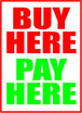 Buy Here Pay Here Retail Window Display Paper Signs | Pack of 6 | 18"w x 24"h