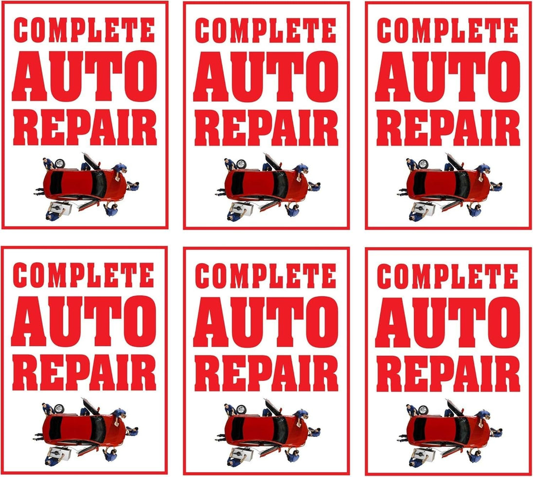 Complete Auto Repair Retail Window Display Paper Signs | Pack of 6 | 18"w x 24"h