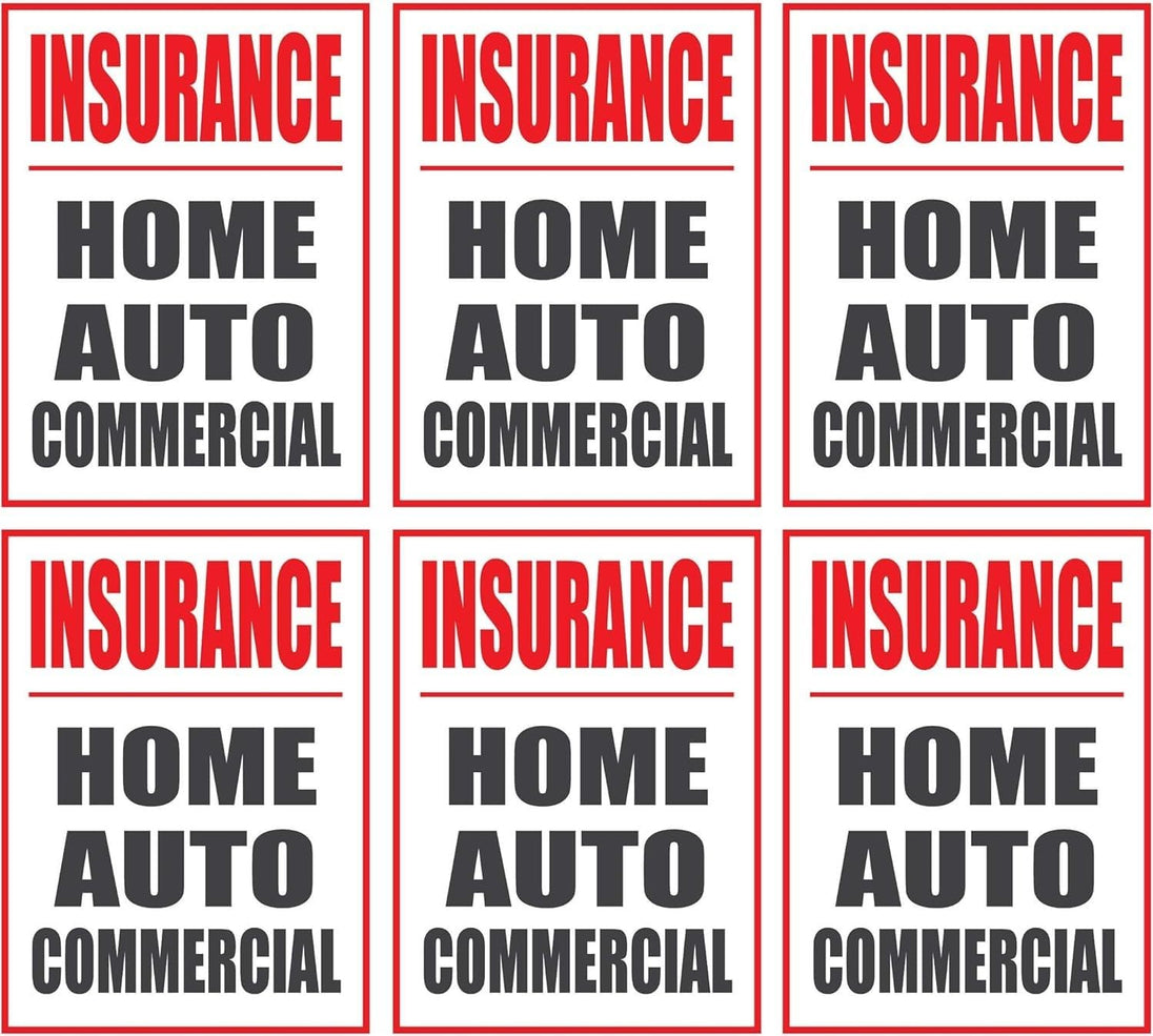 Insurance Home Auto Commercial Retail Window Paper Signs |Pack of 6 |18"w x 24"h