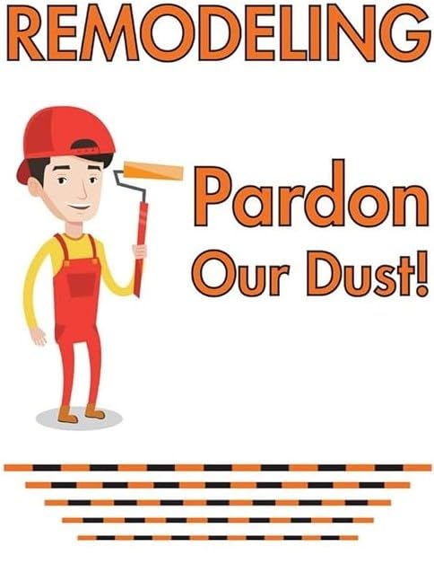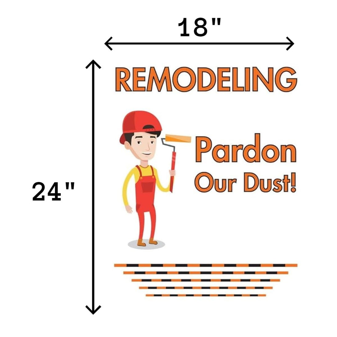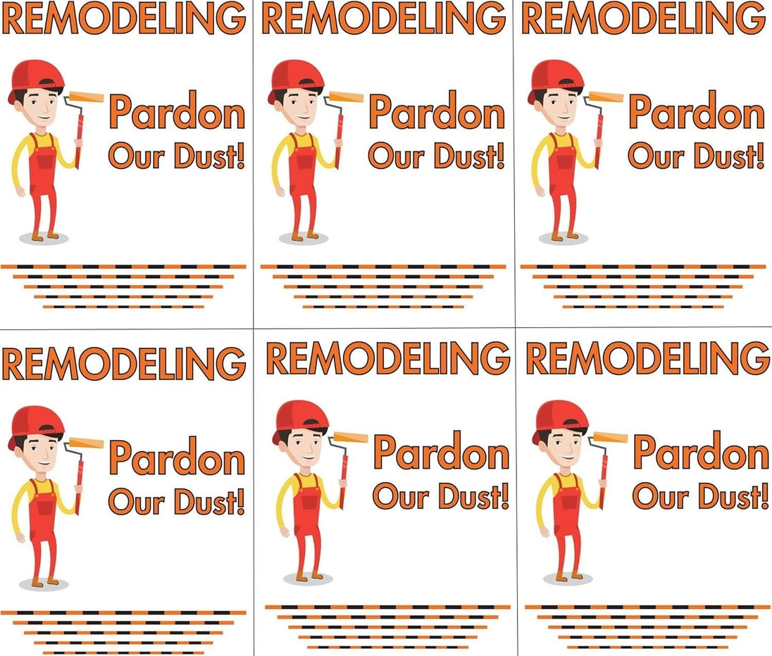 Remodeling Pardon Our Dust Retail Window Paper Signs | Pack of 6 | 18"w x 24"h