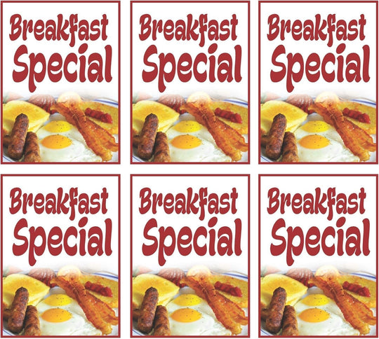 Breakfast Special Retail Window Display Paper Signs | Pack of 6 | 18"w x 24"h