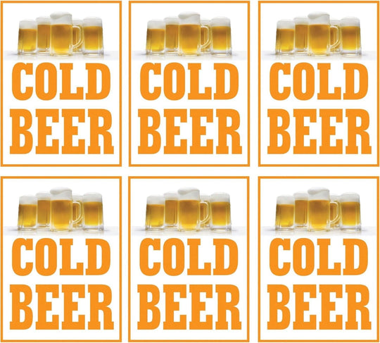 Cold Beer Retail Window Display Paper Signs | Pack of 6 | 18"w x 24"h