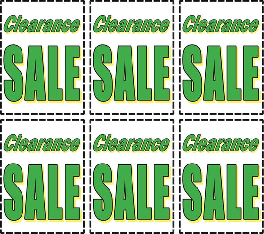 Clearance Sale Retail Window Display Paper Signs | Pack of 6 | 18"w x 24"h