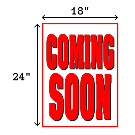 Coming Soon Retail Window Display Paper Signs | Pack of 6 | 18"w x 24"h | Ready