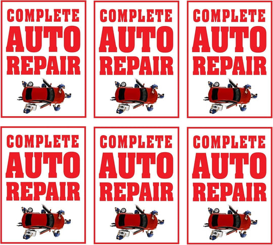 Complete Auto Repair Retail Window Display Paper Signs | Pack of 6 | 18"w x 24"h