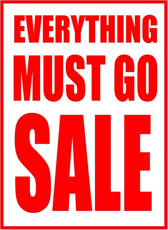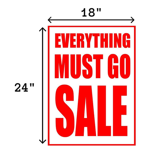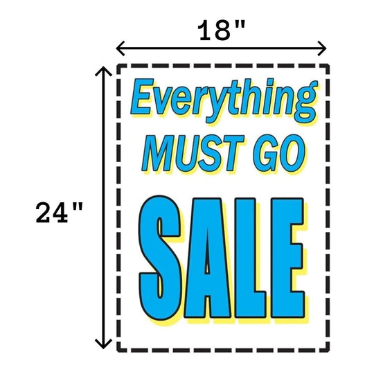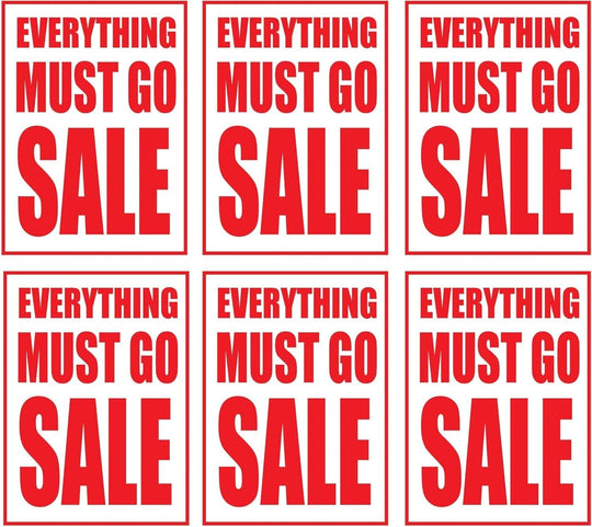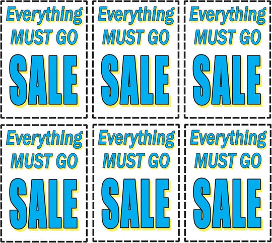 Everything Must Go Sale Retail Window Paper Signs | Pack of 6 | 18"w x 24"h