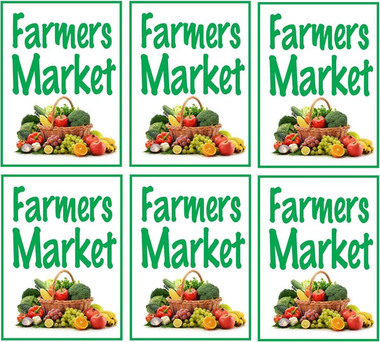Farmers Market Retail Window Display Paper Signs | Pack of 6 | 18"w x 24"h