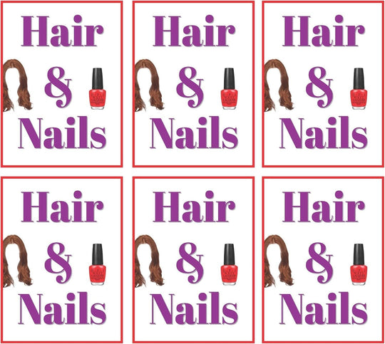 Hair & Nails Retail Window Display Paper Signs | Pack of 6 | 18"w x 24"h