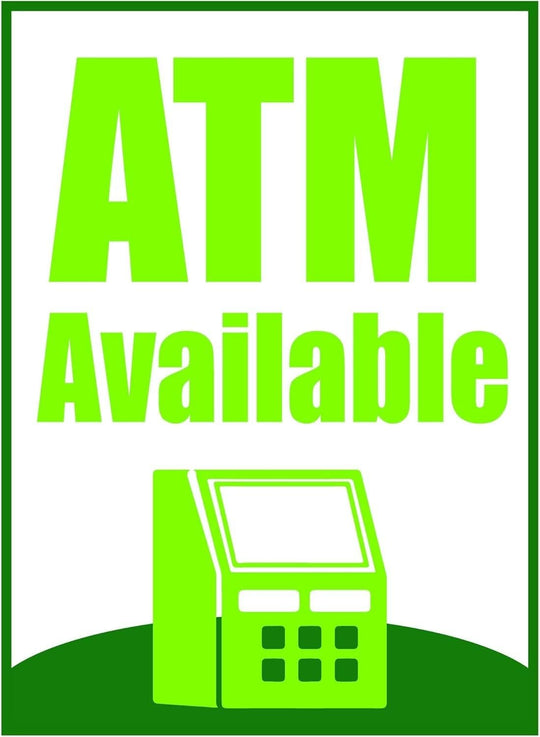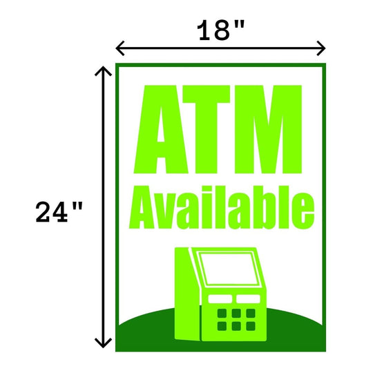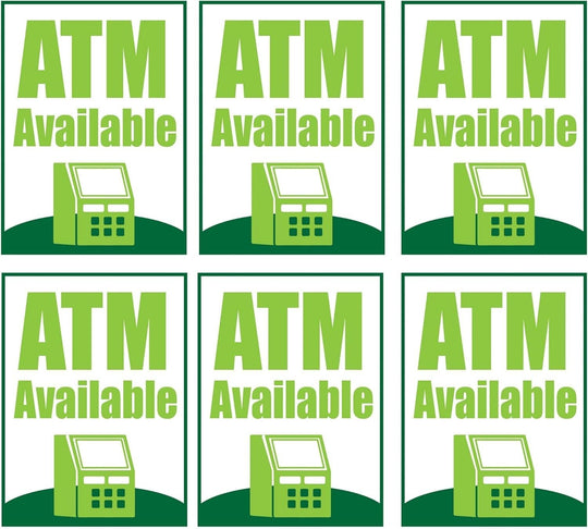 ATM Available Retail Window Display Paper Signs | Pack of 6 | 18"w x 24"h