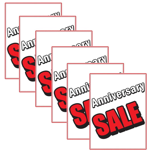 Anniversary Sale Retail Window Display Paper Signs | Pack of 6 | 18"w x 24"h