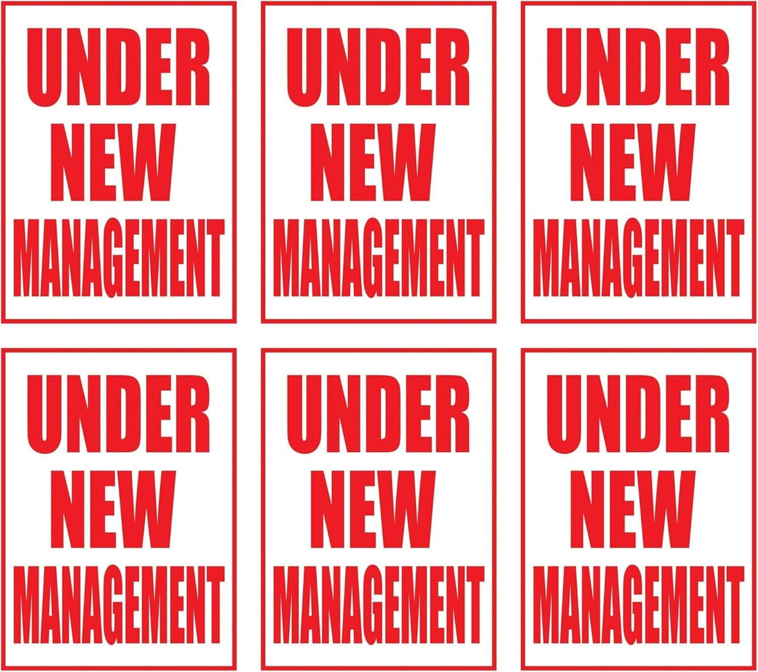 Under New Management Retail Window Display Paper Signs | Pack of 6 | 18"w x 24"h