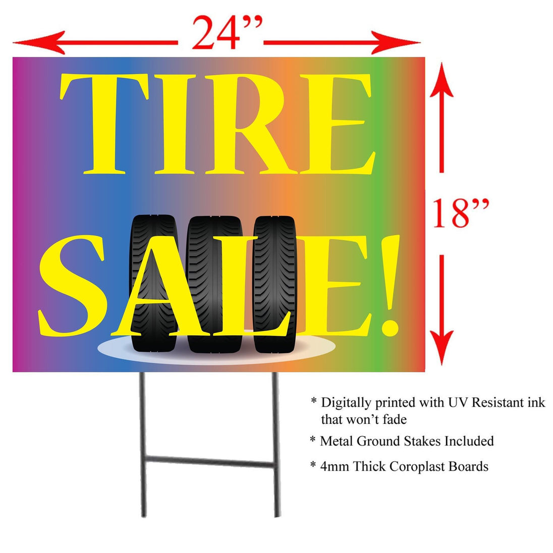 - Highly visible (24”W x 18”H) corrugated plastic sale sign is sure to catch the attention of anyone who passes by, making it the perfect sign to promote your store!