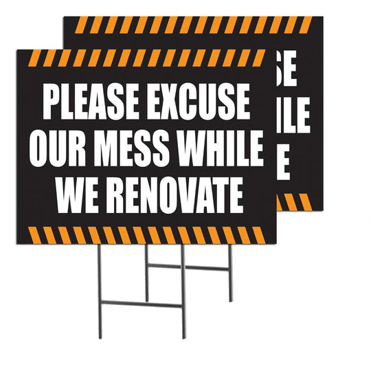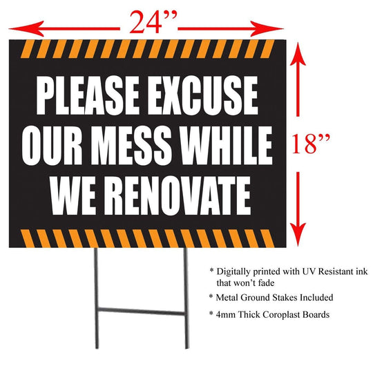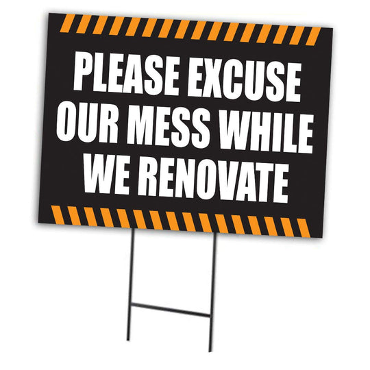 Please Excuse Our Mess | Sidewalk Yard Sign w/ Metal Stakes | 24"W x 18"H