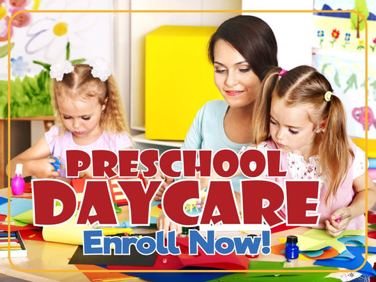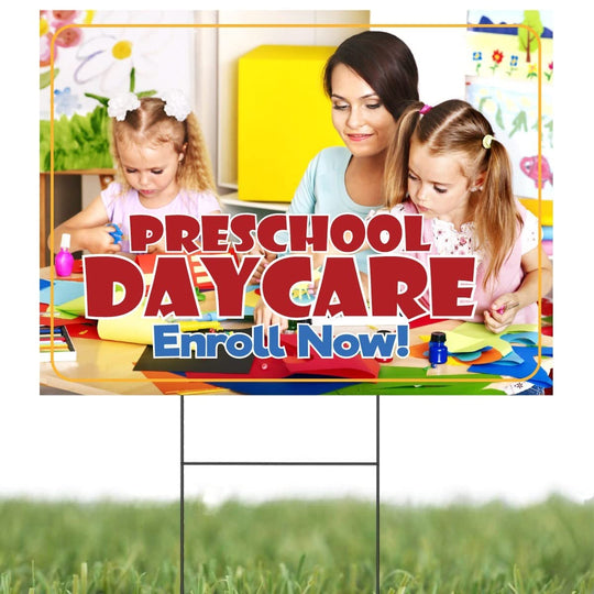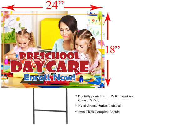 Preschool Daycare Enroll | Sidewalk Yard Sign with Metal Stakes | 24"W x 18"H
