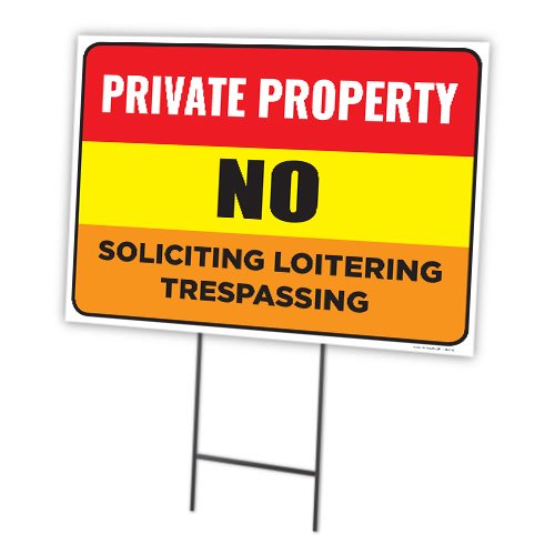 Private Property No Solicit | Sidewalk Yard Sign w/ Metal Stakes | 24"W x 18"H