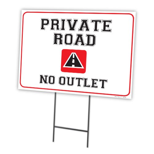 Private Road No Outlet | Sidewalk Yard Sign w/ Metal Stakes | 24"W x 18"H