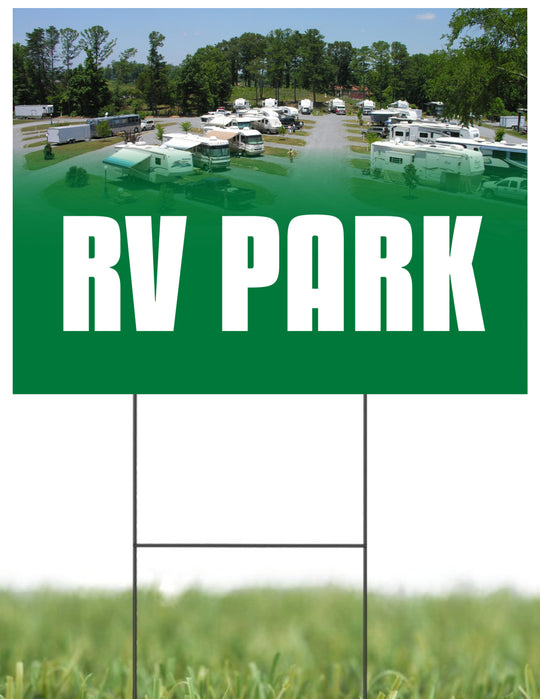 RV Park | Sidewalk Yard Sign with Metal Stakes | 24"W x 18"H