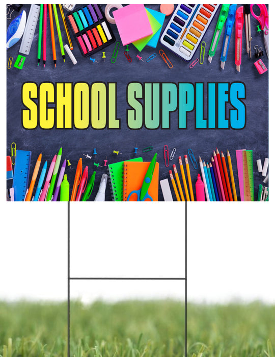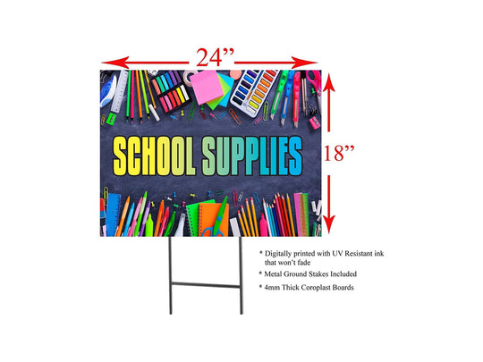 School Supplies | Sidewalk Yard Sign with Metal Stakes | 24"W x 18"H