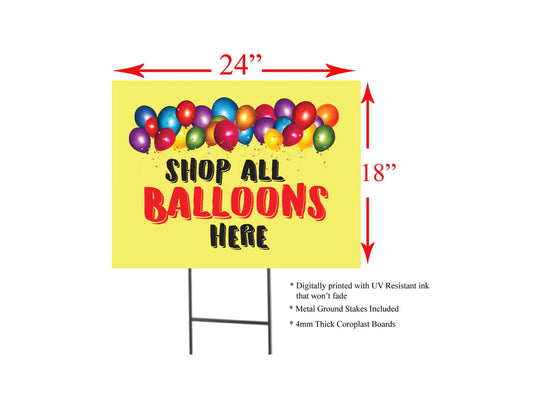 Shop All Balloons Here | Sidewalk Yard Sign with Metal Stakes | 24"W x 18"H