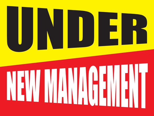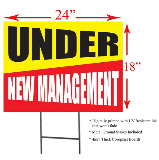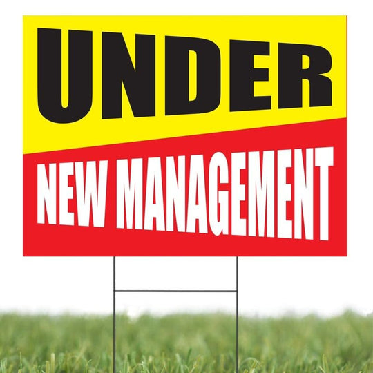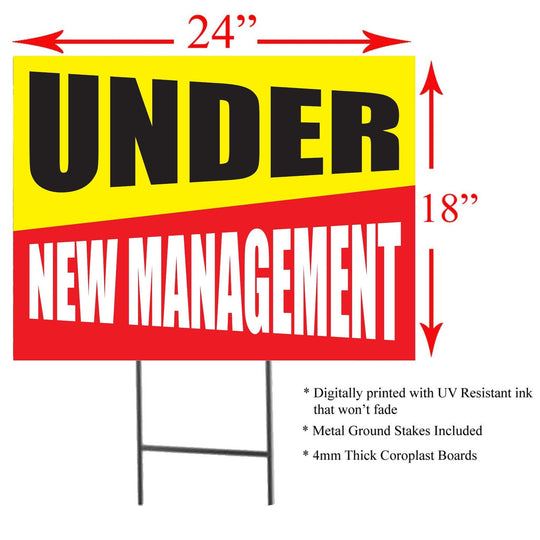 Under New Management | Sidewalk Yard Sign with Metal Stakes | 24"w x 18"h