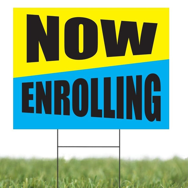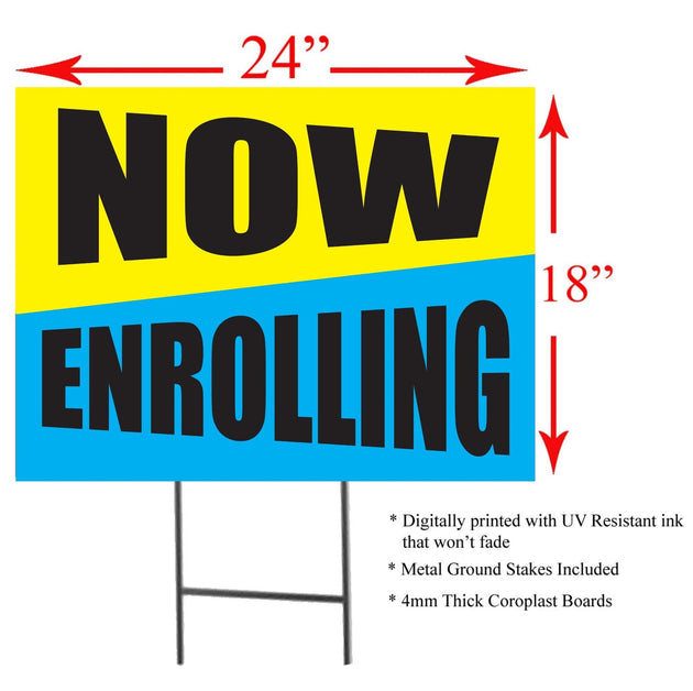 Now Enrolling | 5 Pack | Sidewalk Yard Sign with Metal Stakes | 24"w x 18"h