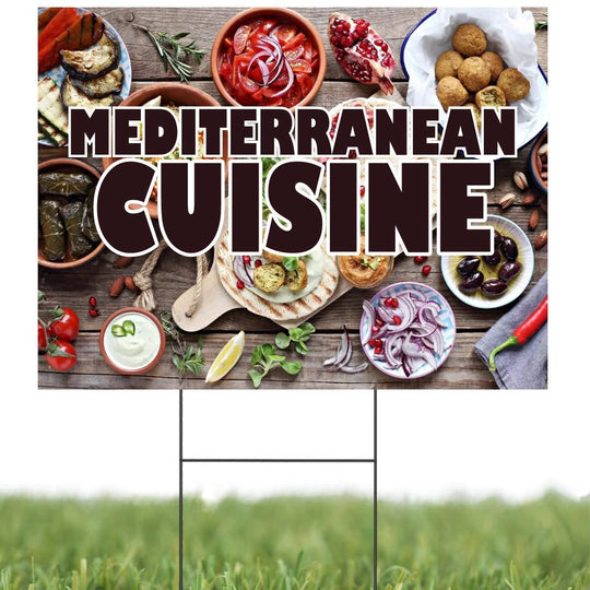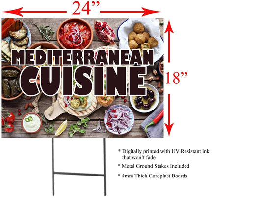 Mediterranean Cuisine | Sidewalk Yard Sign with Metal Stakes | 24"W x 18"H