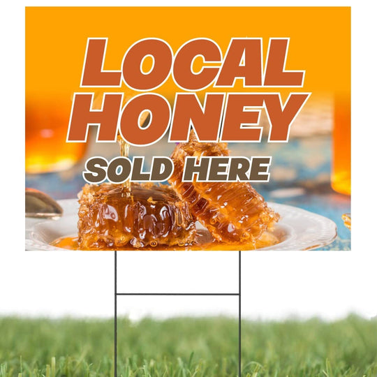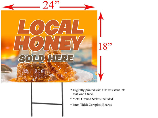 Local Honey Sold Here | Sidewalk Yard Sign with Metal Stakes | 24"W x 18"H