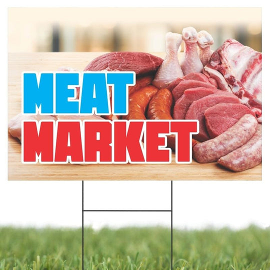 Meat Market | Sidewalk Yard Sign w/ Metal Stakes | 24"W x 18"H