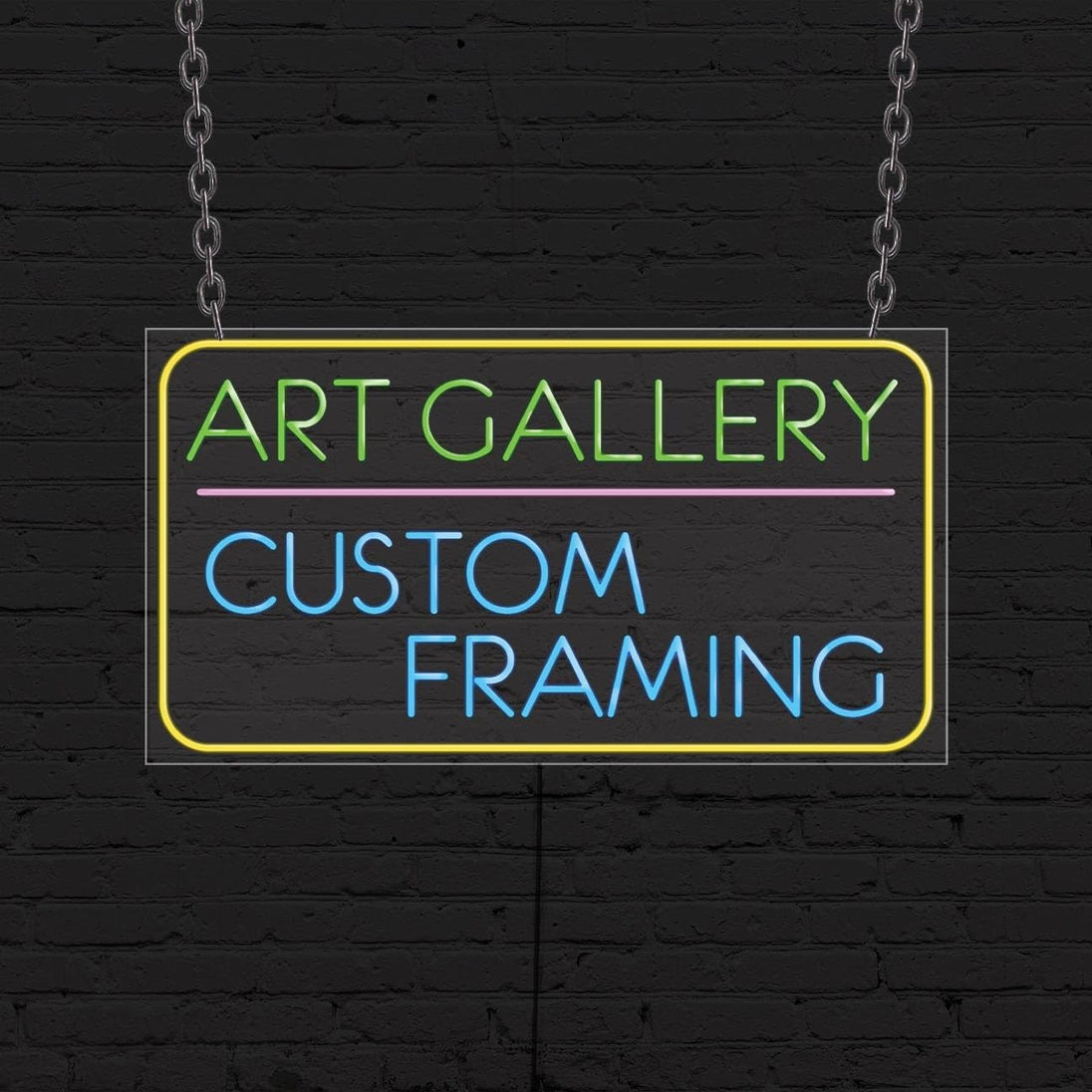 - Sign is mounted on acrylic clear backing and comes with power adapter, remote controller with on/off switch & dimmer, stand offs and hanging kits