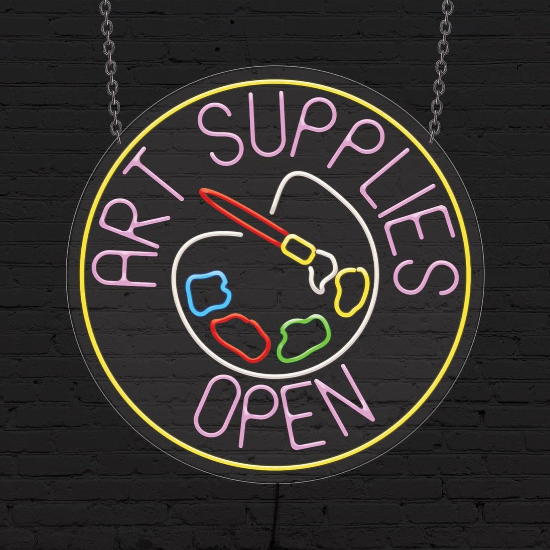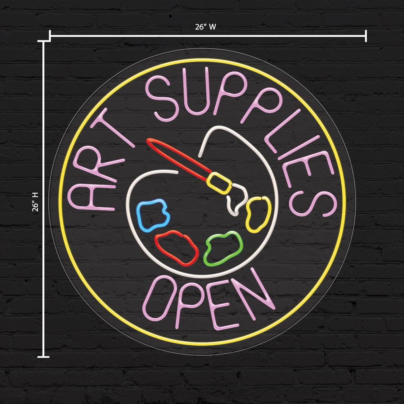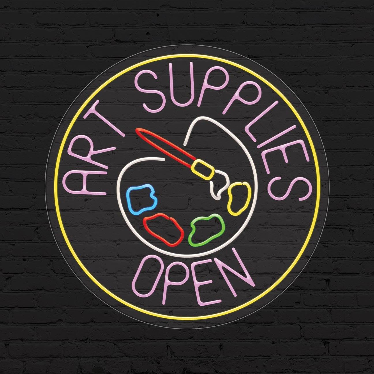 Art Supplies Open Sign for Business Display | LED Flex Neon | 26"W x 26"H x 1"D