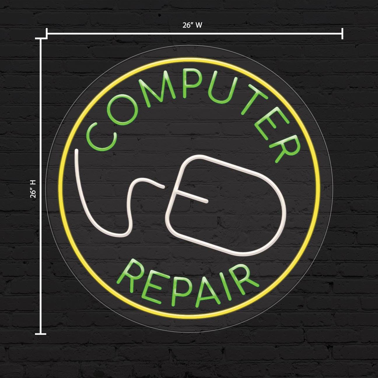 Computer Repair Sign for Business Displays | LED Flex Neon | 26"W x 26"H x 1"D
