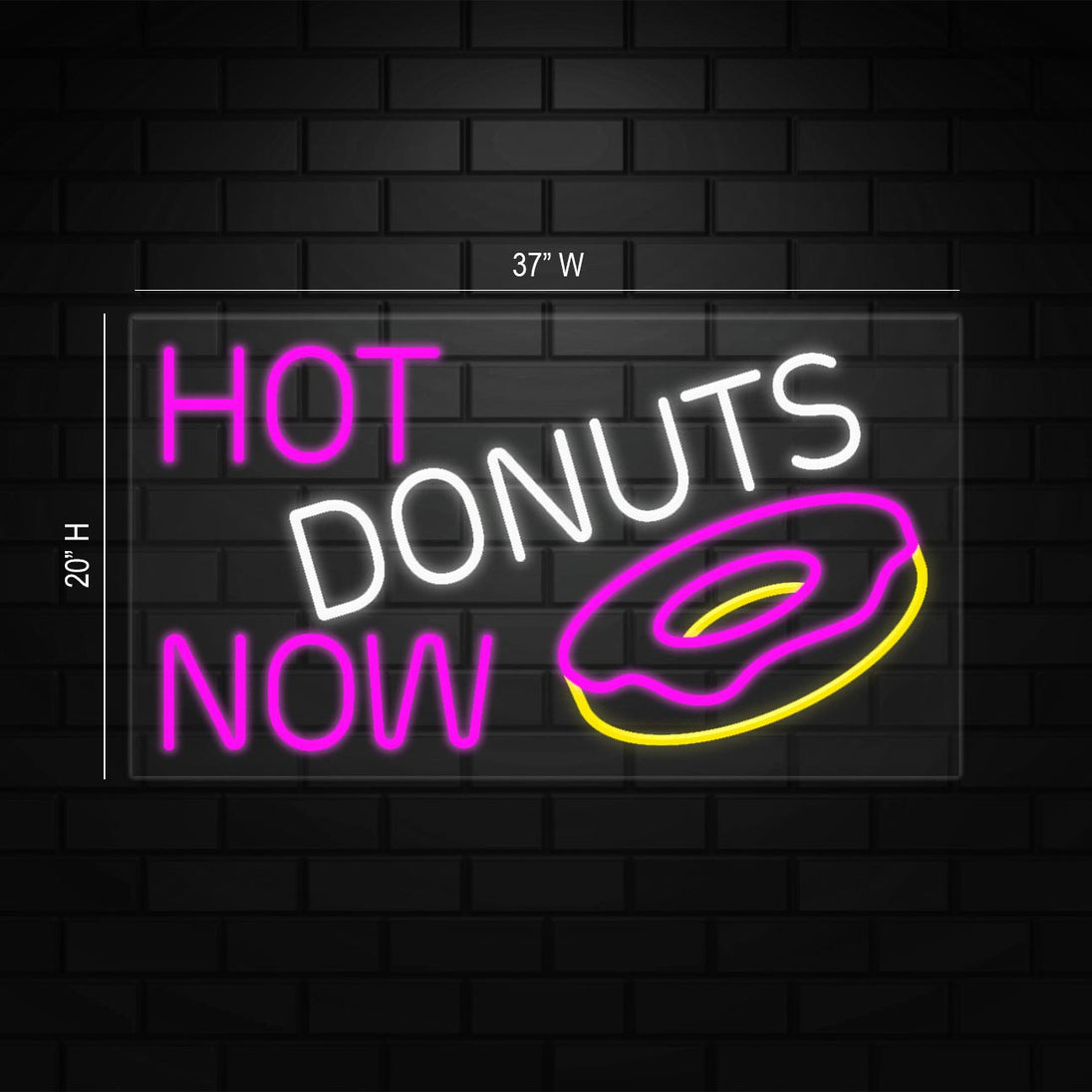 Hot Donuts Now Sign for Business Displays | LED Flex Neon | 37"W x 20"H x 1"D
