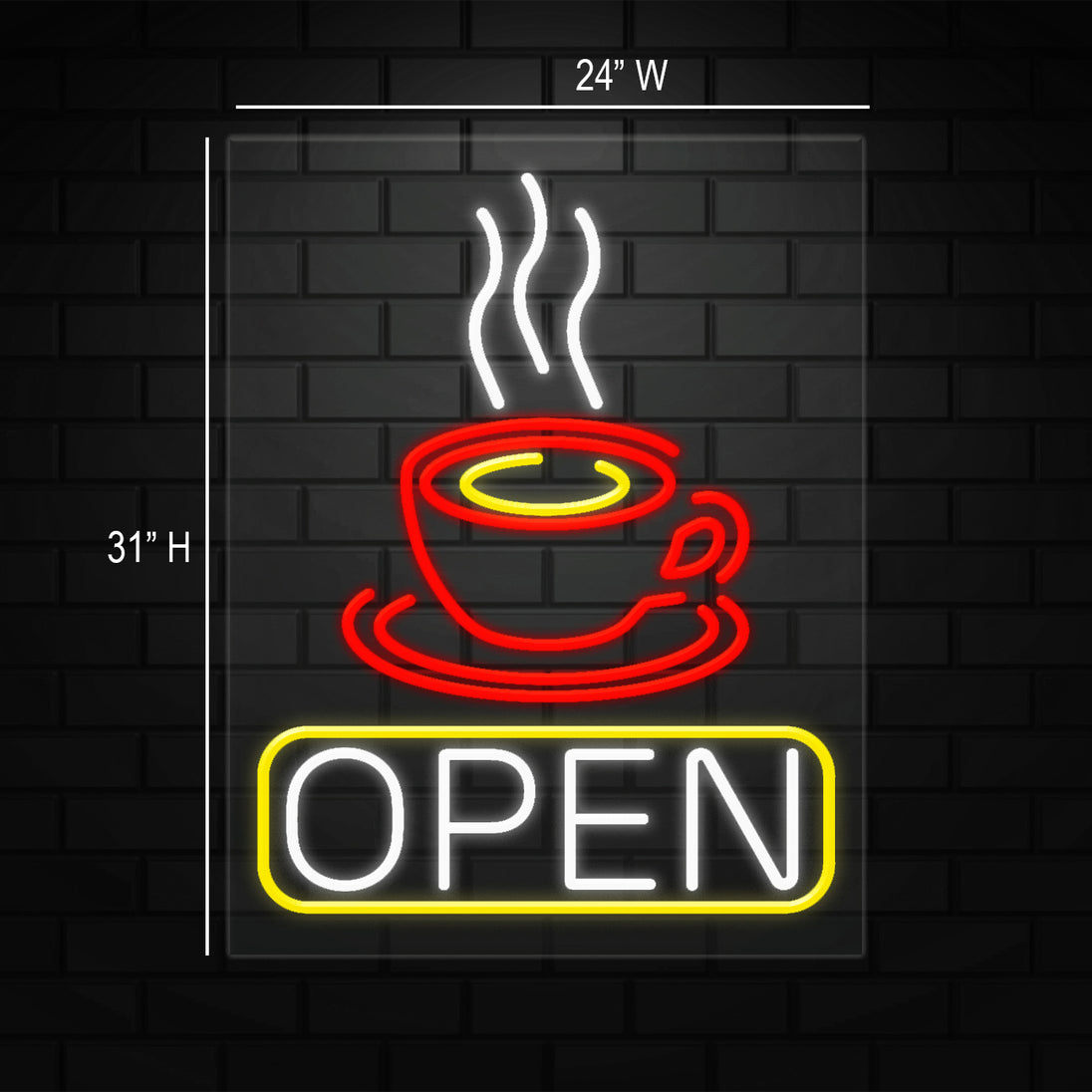 Open Coffee Neon Sign for Retail Displays | LED Flex Neon | 24"W x 31"H x 1"D