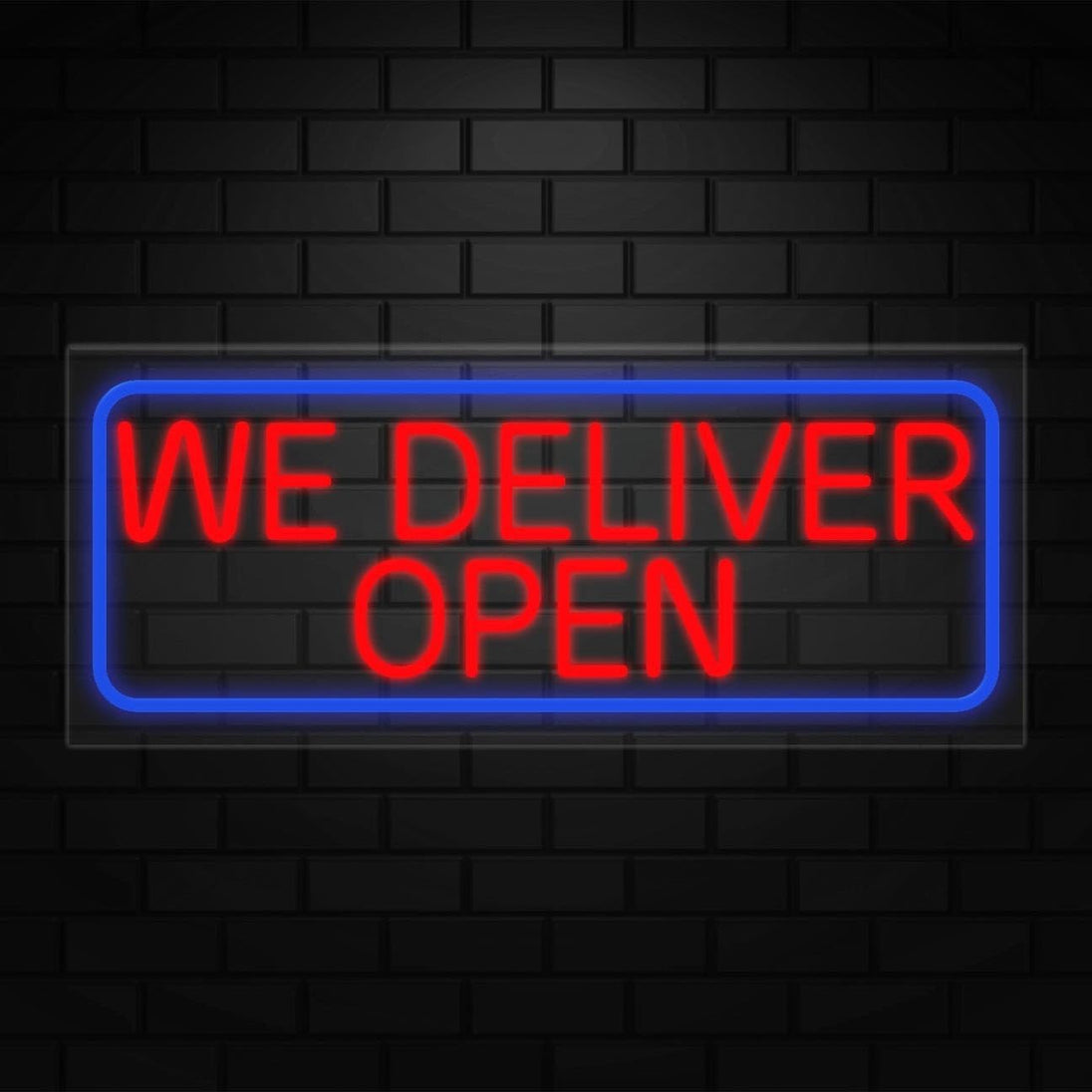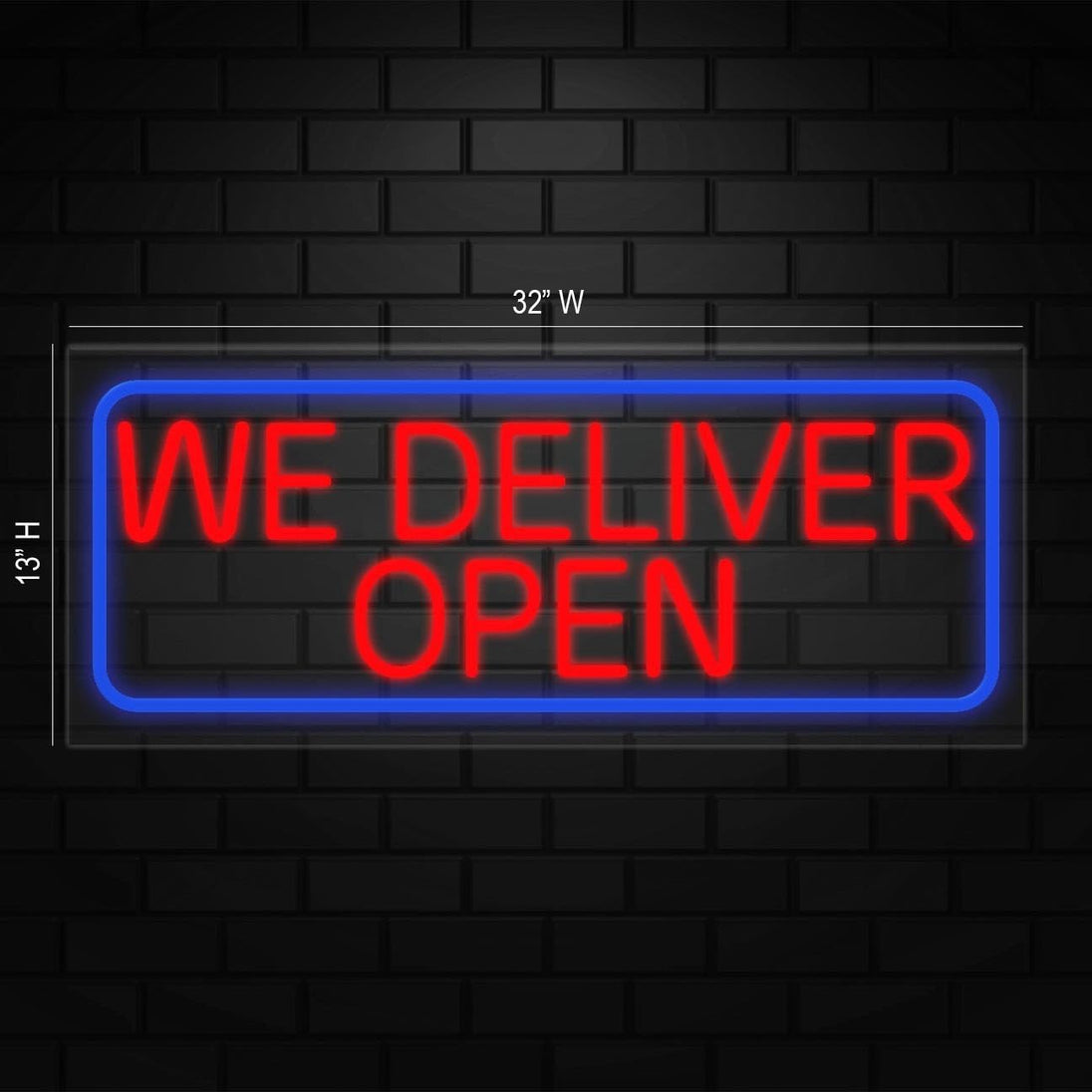 Open We Deliver Neon Sign for Retail Displays | LED Flex Neon |32"W x 13"H x 1"D